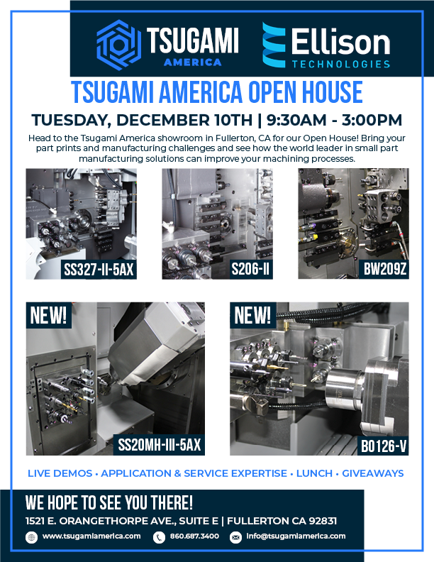 Tsugami America Fullerton Tech Center Open House | Tuesday, December 10, 2024